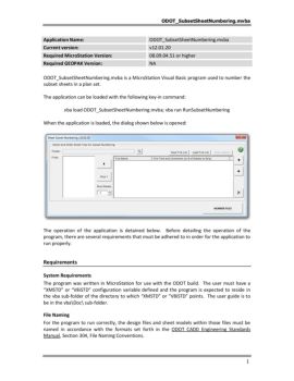 subset sheets in a plan set. The application can be loaded with the following key-in command: vba load ODOT_SubsetSheetNumbering.mvba; vba run RunSubsetNumbering