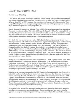 Dorothy Shaver (1893-1959) The First Lady of Retailing “Tall, slender, ... The dolls became the rage, and young women carried the Little Shavers as mascots