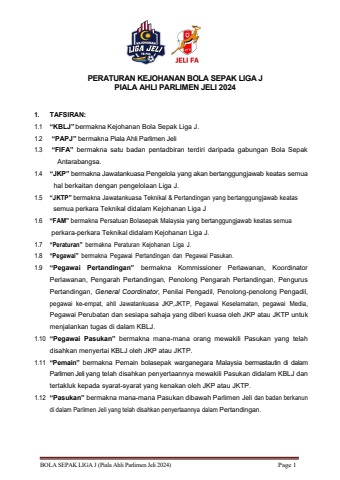 PERATURAN LENGKAP KEJOHANAN LIGA J 2024