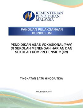 PENDIDIKAN ASAS VOKASIONAL (PAV) DI SEKOLAH MENENGAH HARIAN DAN SEKOLAH KOMPRENHENSIF 9 (K9)