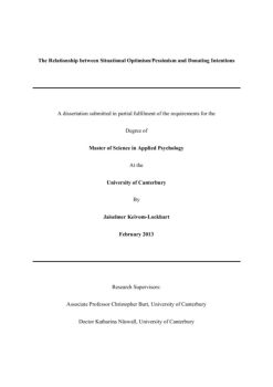 The Relationship between Situational Optimism/Pessimism and Donating Intentions A dissertation submitted in partial fulfilment of the requirements for the