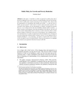 Public Policy for Growth and Poverty Reduction Nicholas Stern* Abstract: In this paper, I would like to outline an approach to public policy that is