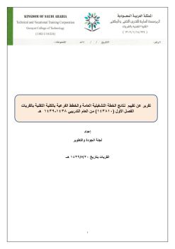 نتائج الخطة التشغيلية العامة والخطط الفرعية بالكلية التقنية بالقريات الفصل الأول ) 143810 ( من العام التدريبي 1438 - 1439 ه