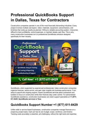 Get reliable, professional **QuickBooks support in Dallas, Texas** tailored specifically for contractors. From setup and job costing to payroll and troubleshooting, expert help is just a call away. ? **+1 (877) 611-8429** for fast, contractor-focused QuickBooks assistance you can trust.