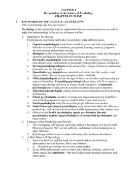 CHAPTER 1 Introduction to the Science of Psychology CHAPTER OUTLINE I. THE WORLD OF PSYCHOLOGY: AN OVERVIEW What is psychology and how did it grow?