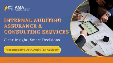 This presentation explores the meaning, why it matters, and key benefits of Internal Auditing, Assurance, and Consulting Services. These services are essential in helping organizations operate efficiently, follow regulations, and make smart business decisions. With the guidance of AMA Audit Tax Advisory, companies can enhance their internal processes, manage risks effectively, and build confidence for sustainable success. For more information, Visit: https://amaaudit.com/our-services/internal-audit/