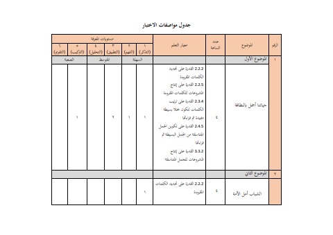 جدول مواصفات الاختبار