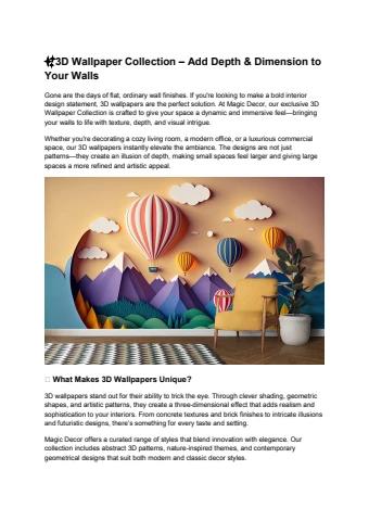 Explore Magic Decor’s 3D Wallpaper Collection – premium designs that add depth, texture, and style to any space. Ideal for homes, offices & commercial decor.