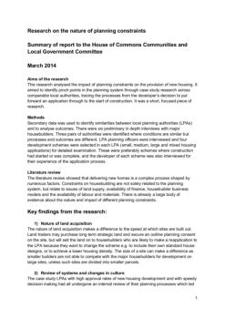 1 Research on the nature of planning constraints Summary of report to the House of Commons Communities and Local Government Committee March 2014