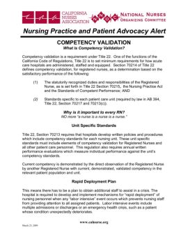 www.calnurse.org March 25, 2009 Nursing Practice and Patient Advocacy Alert COMPETENCY VALIDATION What is Competency Validation? Competency validation is a ...