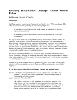 Revisiting Thrasymachus’ Challenge: Another Socratic Failure Joel Buenting, ... greatest reproaches . . . But when someone, in addition to the money of the
