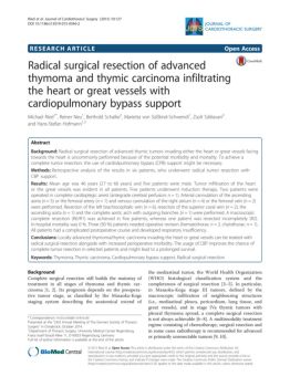 Discussion The prognosis of thymoma and thymic carcinoma depends on resection status, tumor stage, until now classified by the Masaoka-Koga staging system which de-