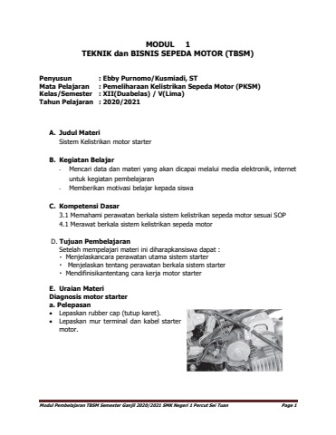 Modul TBSM Kelas X SMK Program Keahlian Teknik Otomotif