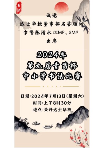 达士华校诚邀您出席2024年第九届青苗杯中小学书法比赛