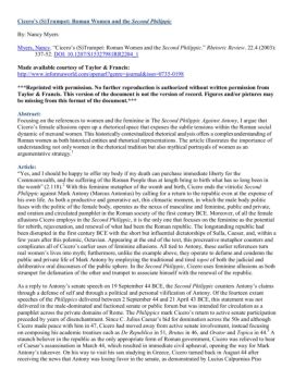 Cicero’s (S)Trumpet: Roman Women and the Second Philippic By: Nancy Myers Myers, Nancy. ―Cicero‘s (S)Trumpet: Roman Women and the Second Philippic.‖