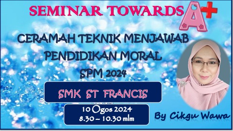 SEMINAR TOWARDS A+ ( CERAMAH TEKNIK MENJAWAB PENDIDIKAN MORAL SMK ST FRANCIS SPM 2024 ) by Cikgu Wawa