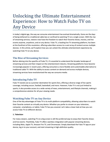 Unlocking the Ultimate Entertainment Experience: How to Watch Fubo TV on Any Device