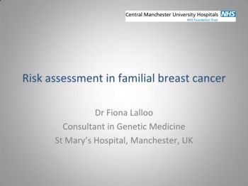 Risk assessment in familial breast cancer Dr Fiona Lalloo Consultant in Genetic Medicine St Mary’s Hospital, Manchester, UK