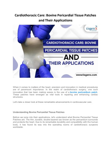 Cardiothoracic Care Bovine Pericardial Tissue Patches and Their Applications