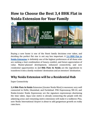 Buying a new home is one of the finest family decisions ever taken, and deciding the perfect flat size is not any less important. A 3,4 BHK Flat in Noida Extension is definitely one of the highest preferences of all those who are seeking a best combination of luxury, comfort, and future appreciation of value.