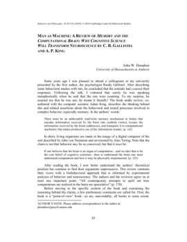 MAN AS MACHINE A REVIEW OF MEMORY AND THE OMPUTATIONAL ...