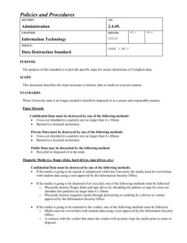 Policies and Procedures SECTION: Administration NO. 2.4.49. CHAPTER: Information Technology ISSUED: REV. B 3/13/13 REV. A POLICY: Data Destruction Standard