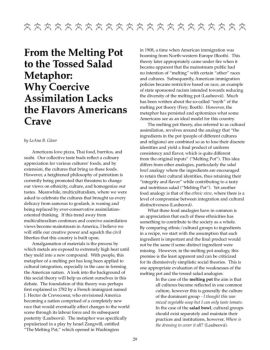 29;;;;; From the Melting Pot to the Tossed Salad Metaphor: Why Coercive Assimilation Lacks the Flavors Americans Crave by LeAna B. Gloor