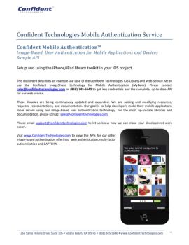 1 265 Santa Helena Drive, Suite 105 • Solana each, A 92075 • (858) 345-5640 • www.ConfidentTechnologies.com Confident Technologies Mobile Authentication Service