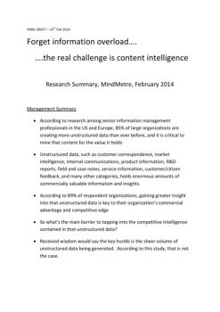 FINAL DRAFT – 10th Feb 2014 Forget information overload…. ….the real challenge is content intelligence Research Summary, MindMetre, February 2014