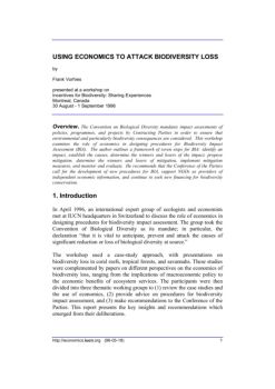 USING ECONOMICS TO ATTACK BIODIVERSITY LOSS by Frank Vorhies presented at a workshop on ... Once a new package of mitigatory incentive measures has been put into