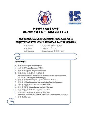 MESYUARAT AGUNG TAHUNAN PIBG KALI KE-51 SMJK TSUNG WAH TAHUN 2024/2025