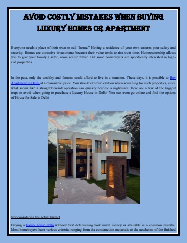 Avoid Costly Mistakes When Buying Luxury Homes or Apartment