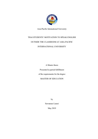 THAI STUDENTS’ MOTIVATION TO SPEAK ENGLISH OUTSIDE THE CLASSROOM AT ASIA-PACIFIC INTERNATIONAL UNIVERSITY