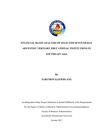 FINANCIAL RATIO ANALYSIS OF SELECTED SEVENTH-DAY ADVENTIST TERTIARY EDUCATIONAL INSTITUTIONS IN SOUTHEAST ASIA