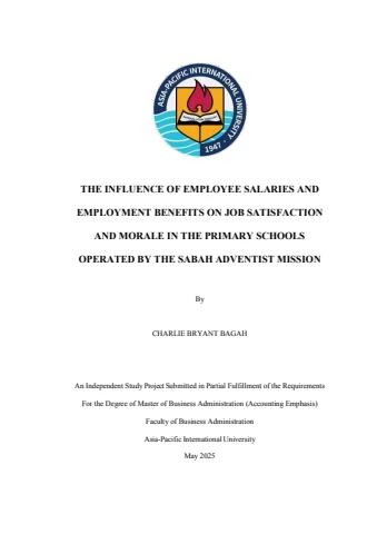 The Influence of Employee Salaries and Employment Benefits on Job Satisfaction and Morale in the Primary Schools Operated by the Sabah Adventist Missionby Charlie Bryant Bagah