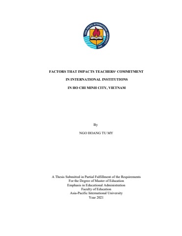 FACTORS THAT IMPACTS TEACHERS‘ COMMITMENT IN INTERNATIONAL INSTITUTIONS IN HO CHI MINH CITY, VIETNAM