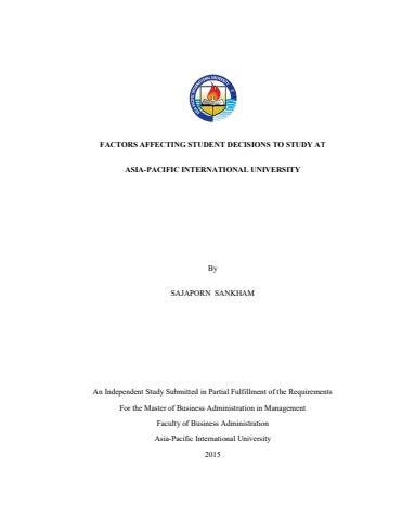 FACTORS AFFECTING STUDENT DECISIONS TO STUDY AT ASIA-PACIFIC INTERNATIONAL UNIVERSITY