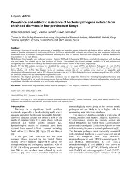 Original Article Prevalence and antibiotic resistance of bacterial pathogens isolated from childhood diarrhoea in four provinces of Kenya Willie Kipkemboi Sang1 ...