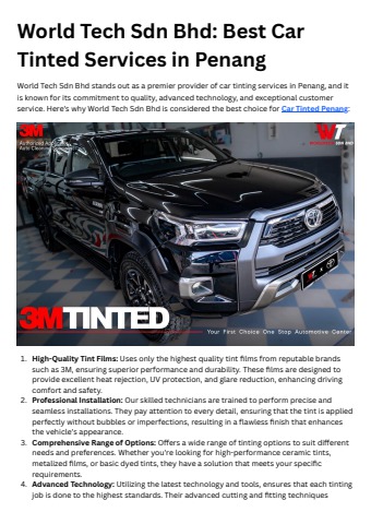 For car owners in Penang seeking the best tinting services, World Tech Sdn Bhd provides the perfect Best Car Tinted Penang with quality, professionalism, and value. Their dedication to excellence ensures that your vehicle receives the best possible care and protection, enhancing both its functionality and aesthetic appeal.
