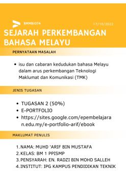 CABARAN DAN ISU KEDUDUKAN BAHASA MELAYU DALAM ARUS PERKEMBANGAN TMK