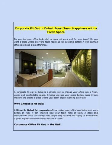 Upgrade your office with a corporate fit-out in Dubai. Make your space fresh, modern and comfy for your team. To know more, reach out to Contractors Direct today and see how they can help you! Visit: https://contractors.direct/fitout-finance