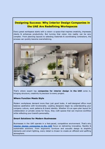Explore how top interior design companies in the UAE create stylish, functional & cost-efficient workspaces that boost productivity. For more, use the portal of Contractors Direct.