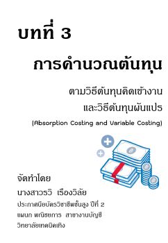 การคำนวณต้นทุนตามวิธีคิดเข้างาน เเละวิธีต้นทุนผันเเปร (Absorption Costing and Variable Costing)