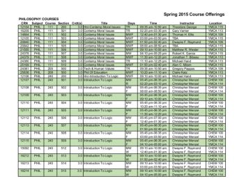PHILOSOPHY COURSES CRN Subject Course Section Crdt(s) Title Days Time Instructor€ Location 12104 PHIL 111 200 3.0 Hnr-Contemp Moral Issues€ TR 09:35 am-10:50 ...