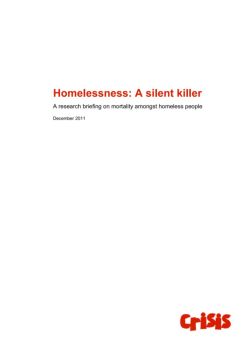 Homelessness: A silent killer 3 homeless people and to ensure that they and the specialist services they need are a priority in the restructuring of the NHS.