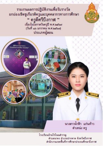 แบบรายงานผลการปฏิบัติงานเพื่อขอรับรางวัล "ครูดีศรีบึงกาฬ" ประจำปีการศึกษา ๒๕๖๗ เนื่องในโอกาสวันครู โดย นางสาวน้ำฟ้า แก่นท้าว