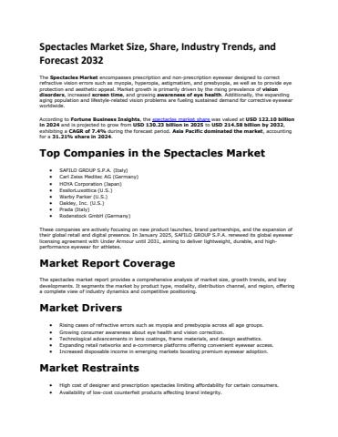 Spectacles Market Growth Insights, Global Trends, and Forecast 2032