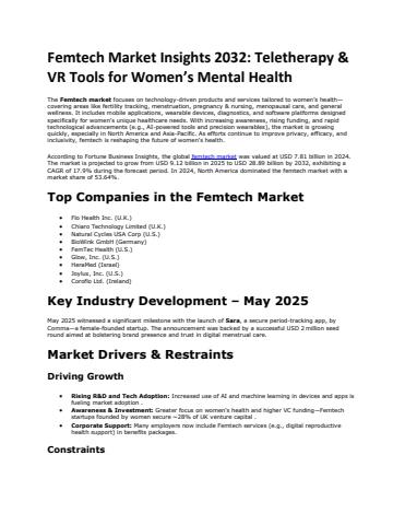Femtech Market Growth 2032: Role of Subscription Models and Digital Coaching