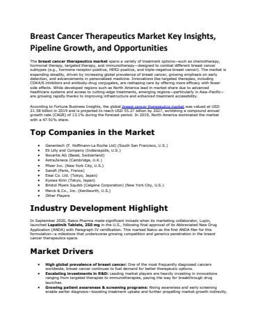 According to Fortune Business Insights, the global breast cancer therapeutics market was valued at USD 21.58 billion in 2019 and is projected to reach USD 55.27 billion by 2027, exhibiting a compound annual growth rate (CAGR) of 13.1% during the forecast period. In 2019, North America dominated the market with a 47.91% share.