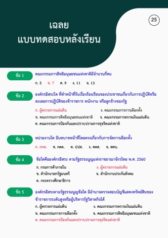 เฉลยแบบทดสอบหลังเรียน